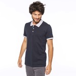 Contrasting rib at neck and cuffs. Contrasting taped neck. Contrasting inner placket with 3 buttons. Twin-needle finishing at hem. BSCI certified.